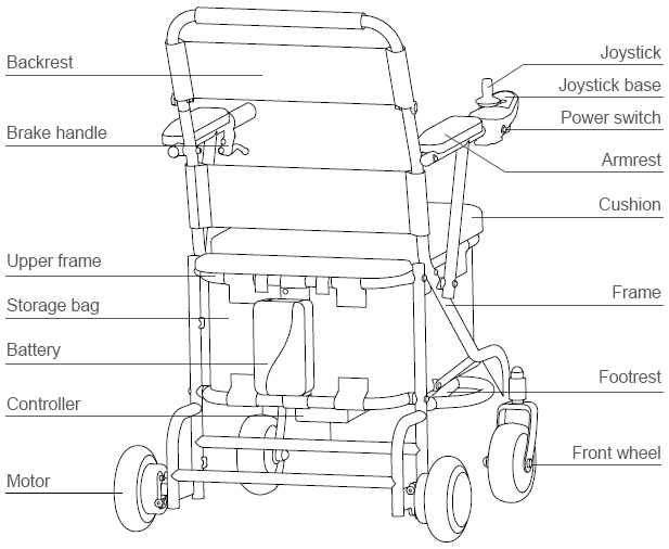 Control the power supply of the wheelchair. When pressed, the wheelchair is in power supply. When released, it is out of power supply.